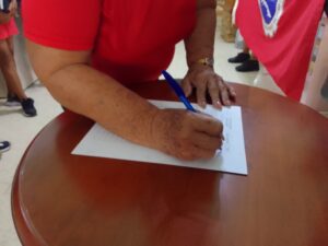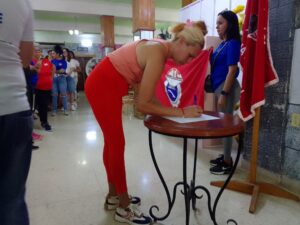 «Estamos apoyando hoy las firmas contra el bloqueo. No queremos guerras en nuestro país ni invasiones. Queremos que nuestros niños tengan paz y sean felices; que podamos ir a las ecuelas y los centros de trabajo sin preocupaciones ni tristeza en nuestra isla», agrega Mileydis Elena Suárez Fundora, Trabajadora UEB La Gloria del Mercado.