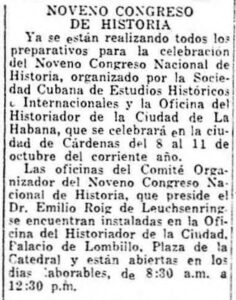 “…Cárdenas, justamente llamada la Perla del Norte, [ha sido] elegida ya para la celebración en el próximo año, del Noveno Congreso Nacional de Historia, dedicado a rememorar el Centenario de la bandera cubana, por haber sido en dicha ciudad donde por primera vez ondeó en territorio patrio, agitada amorosamente por la brisa tropical, la enseña de la estrella solitaria, creada por Narciso López en 1849 —hace justamente cien años—y la cual habría de ser luego, desde el advenimiento de la República, nuestro pabellón nacional”.