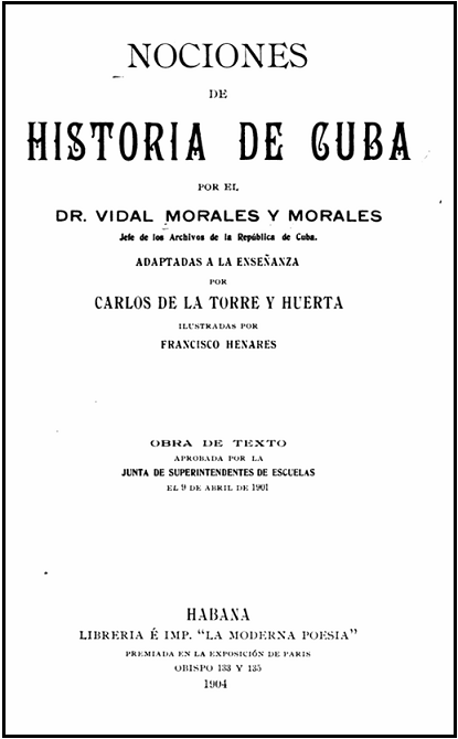 A la defensa del legado de Carlos J. Finlay contribuyó, de forma significativa, la enseñanza de la historia de Cuba. sobre todo a partir de los libros de texto publicados entre 1902 y 1959. Pionero en esta labor reivindicadora fue Vidal Morales y Morales, autor de Nociones de Historia de Cuba, texto que apareció en 1904 y tuvo varias ediciones. Precisamente en la quinta edición, revisada por Carlos de la Torre, se planteó lo siguiente: