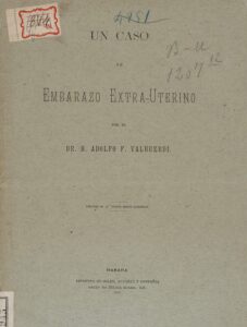 Dentro de la obra científica de Adolfo Valhuerdi sobresalió el reporte Un caso de embarazo extrauterino (1887), que se publicó en la revista Crónica Médico-Quirúrgica de La Habana y después como libro. En el Primer Congreso Médico Nacional, celebrado en 1905, presentó una ponencia que tituló “Sarcomatosis primitiva difusa de la piel”. En el primero de estos trabajos, destacó el deber que “…la ciencia impone a todos los que cultivamos sus fértiles campos con verdadero amor y vocación decidida”.