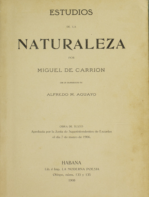 La obra pedagógica más relevante de Miguel de Carrión fue el libro de texto Estudios de la naturaleza (1908), el cual concibió en colaboración con el pedagogo Alfredo M. Aguayo. Aprobado como libro de texto dos años antes, fue concebido de forma novedosa. Sobre todo, por la forma en que se presentó el contenido a estudiar.
